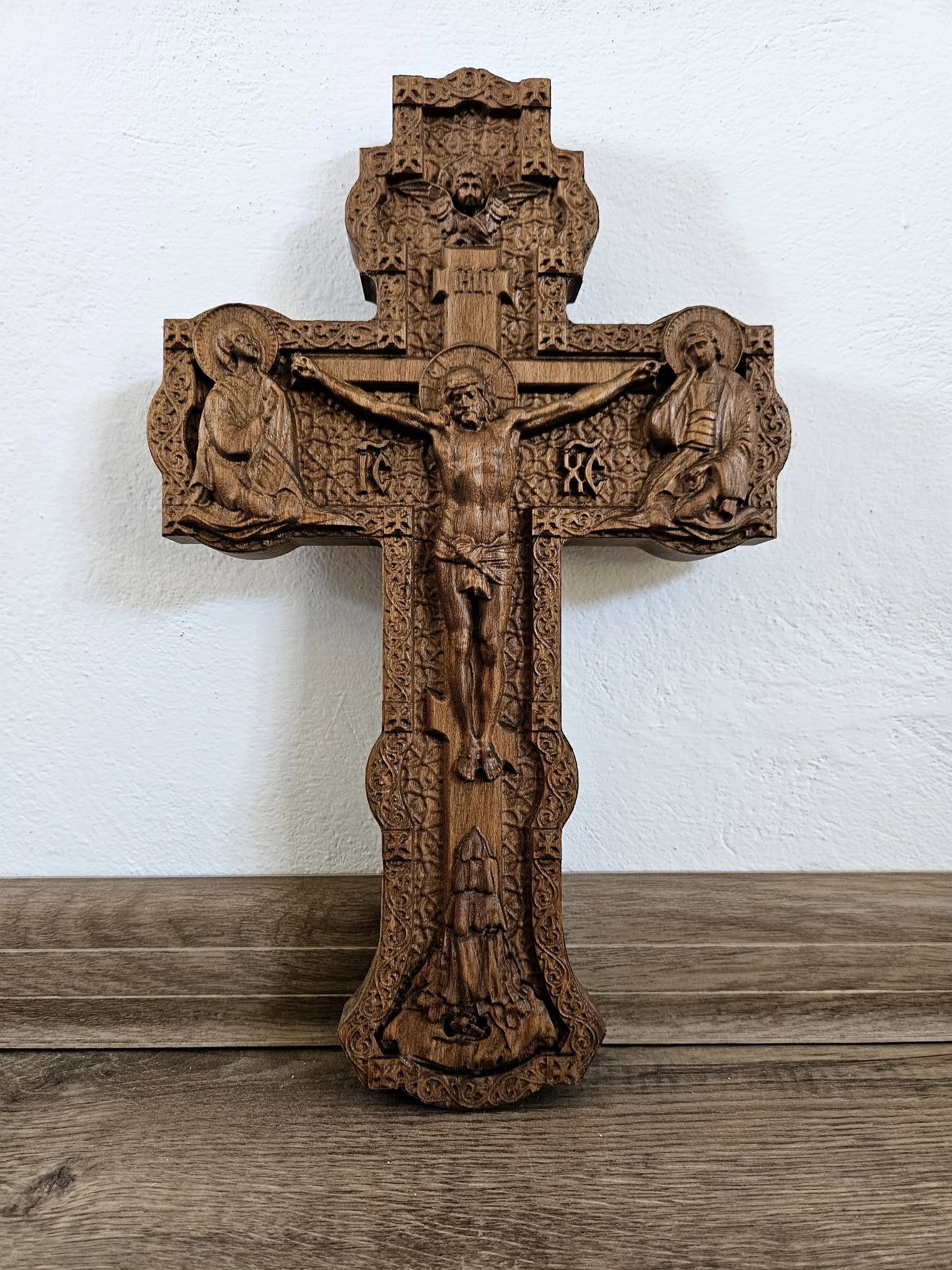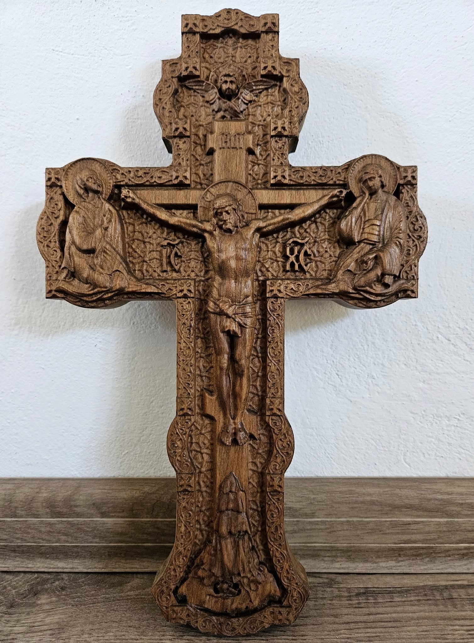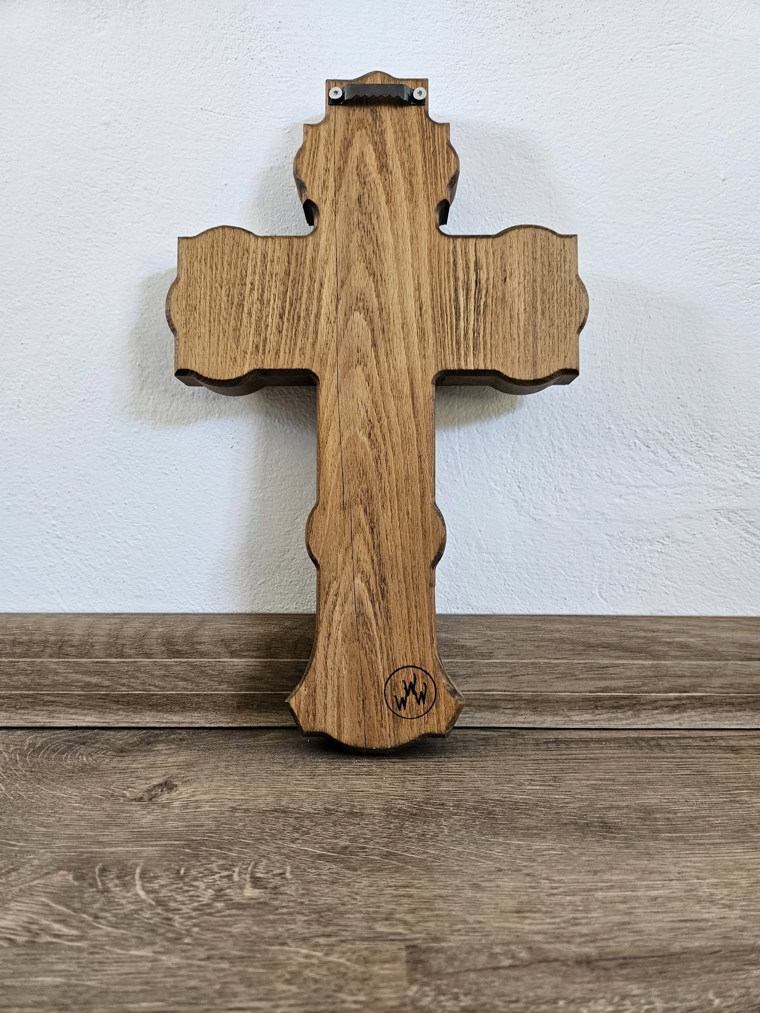 Представяме ви нашия дърворезбован православен кръст, изработен с внимание, почит и уважение към духовната традиция. Този кръст не е просто предмет – той е знак на вяра, закрила и благословия за дома, църквата или като дар за близък човек.