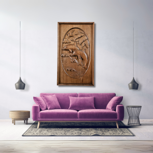 Ръчно и машинно резбован панел от бук с делфини 🌊