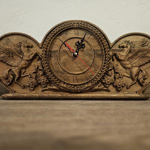 Уникален дърворезбован часовник с Коне